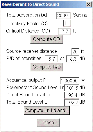 The software includes the concepts and calculations of: Reverberation Time (RT), Reverberant/Direct Sound, Sound Transmission Class (STC) and Composite